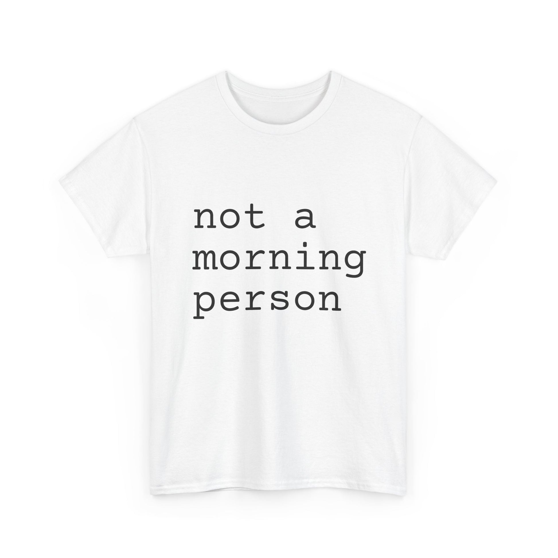 Soft, breathable, and unapologetically honest — this classic crew tee speaks for the slow-wakers. Lightweight yet sturdy cotton drapes easily over shoulders and holds its shape through repeated wear. The understated lowercase typewriter-style print sits centered on the chest, a quiet declaration for those who move at their own pace. Wear it with a rumpled cardigan, morning coffee in hand, or pair it with jeans for a low-key weekend. Comfortable enough for lazy Saturdays, reliable enough for weekday errands, it becomes a small ritual piece in a wardrobe that values comfort and candidness.